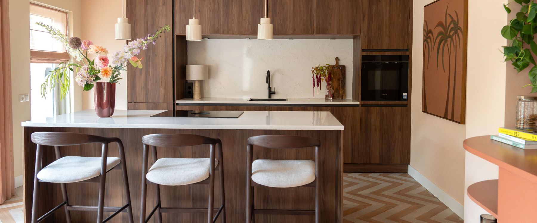 Je hoeft niet alles in donker hout te doen. Zelfs een paar accenten, zoals een bijzettafeltje, boekenplank of houten stoelen in donkere kleur, kunnen een groot verschil maken. Zo voeg je warmte en luxe toe zonder dat je ruimte donker of zwaar wordt.