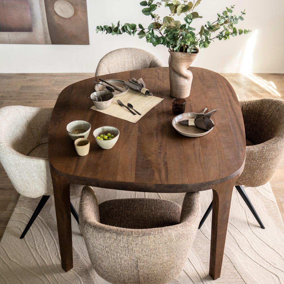 Donker houten meubels zoals houten eettafels, salontafels of stoelen voegen warmte toe aan iedere ruimte. De diepe, rijke tinten zorgen voor een knusse, uitnodigende sfeer. Combineer ze met zachte stoffen zoals velvet om een luxe, comfortabele uitstraling te creëren. Een donker houten eettafel met velvet stoelen is bijvoorbeeld een perfecte manier om een chique interieur te realiseren.