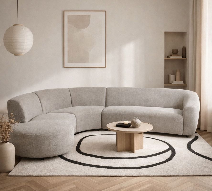 Voor wie houdt van rust en gezelligheid is er cozy minimalisme. Deze trend combineert de eenvoud van minimalisme met zachte materialen, lichte tinten en vloeiende, organische vormen. Denk aan een lichtgrijze organische bank met strakke lijnen, subtiele grafische prints en zachte accentkleuren. Het resultaat? Een warm en uitnodigend interieur dat rustig oogt en toch comfort uitstraalt. Cozy minimalisme is de perfecte balans tussen stijl en sfeer.