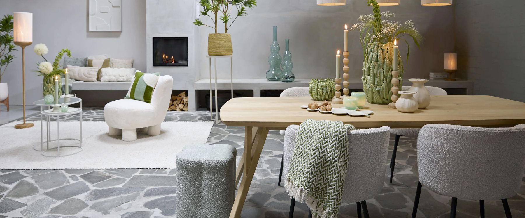 Breng balans in je interieur met meubels in matcha-stijl, geïnspireerd op de zachte, aardse tinten van groene thee. Denk aan zachte groentinten, organische vormen en natuurlijke materialen zoals hout, linnen en keramiek. Deze stijl straalt rust, eenvoud en harmonie uit, perfect voor wie een kalme, stijlvolle sfeer wil creëren. Combineer matcha-groen met naturel kleurige banken en houtaccenten zoals, houten salontafels of een mooie houten eettafel voor een warme, serene uitstraling in elke ruimte.