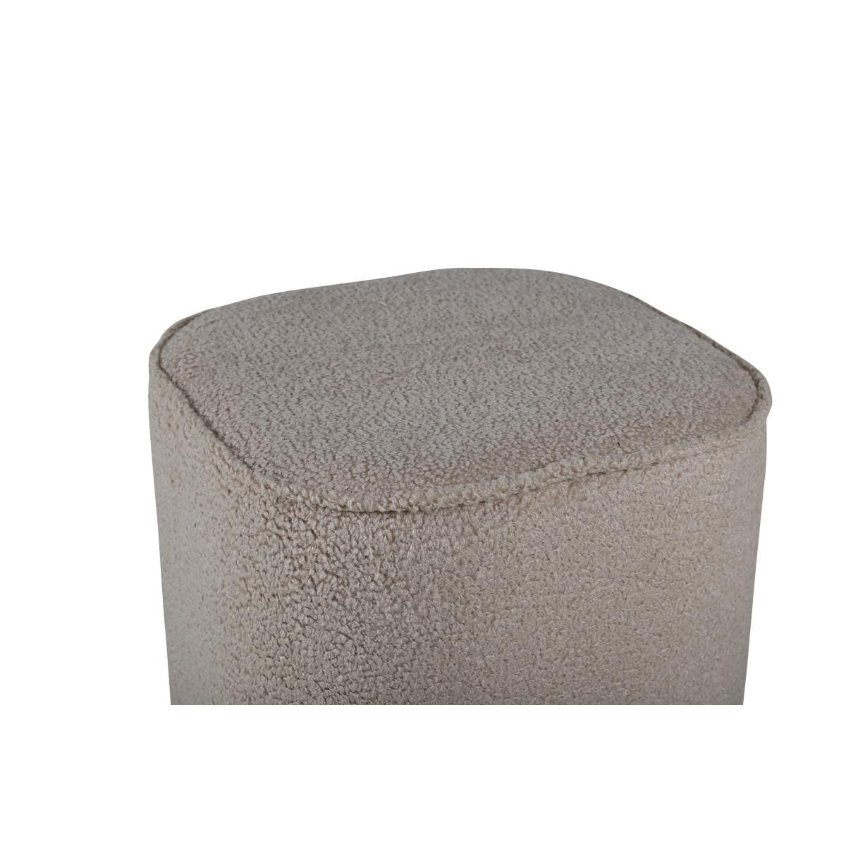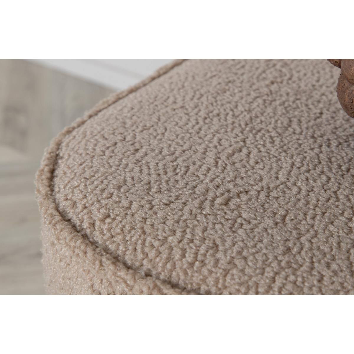 De poef is bekleed met een hoogwaardige teddy stof in een warme beige tint, wat zorgt voor een uitnodigende en gezellige uitstraling. De stevige constructie garandeert duurzaamheid en langdurig gebruik zonder in te boeten aan comfort.
