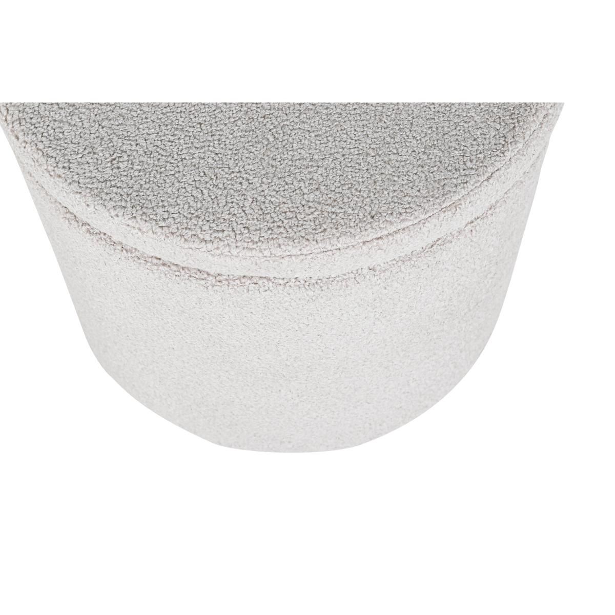 De poef is ontworpen met een stevige basis die zorgt voor stabiliteit en duurzaamheid, terwijl het lichte gewicht het gemakkelijk maakt om te verplaatsen. Het subtiele grijze teddy-materiaal voegt een vleugje elegantie toe en past moeiteloos in verschillende woonstijlen.