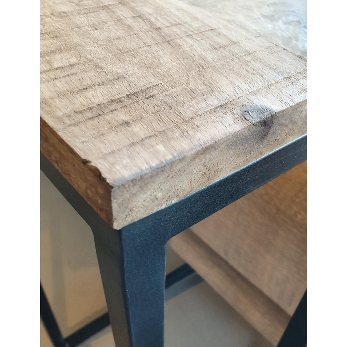 Ervaar de handige Jordy bijzettafels: een set van twee met rechthoekige tafelbladen. Het stalen onderstel, met een stijlvolle vorm en afwerking, draagt stevige mangohouten bladen voor een natuurlijke touch. De handige vorm maakt het eenvoudig om ze half over de bank of fauteuil te schuiven.
