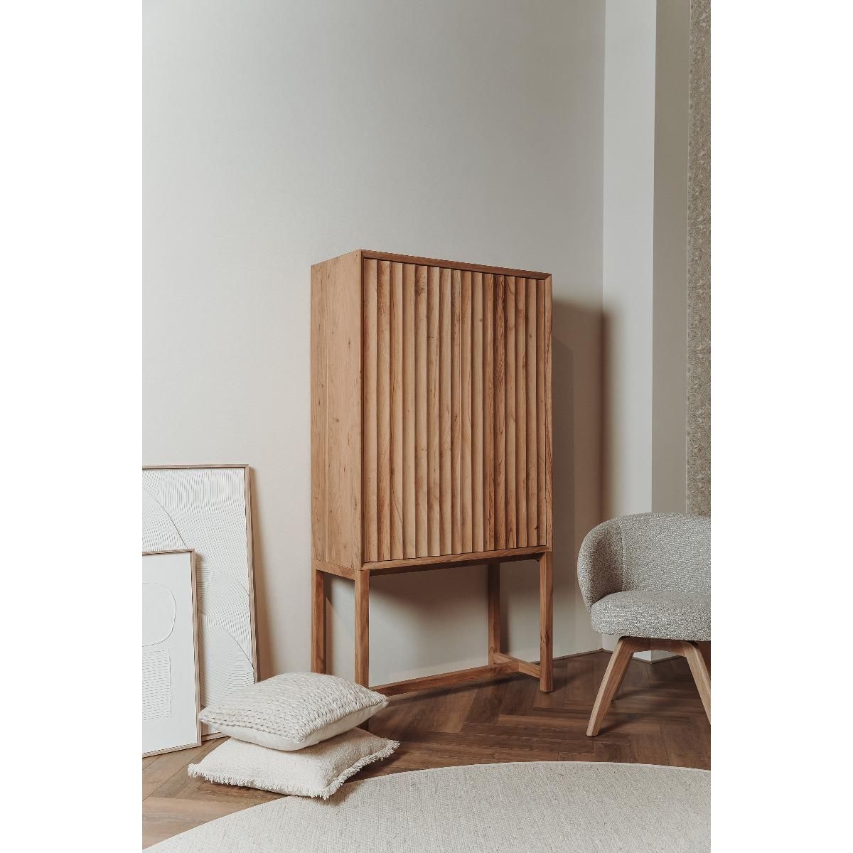 Ontdek de Crotone opbergkast van Tower Living, een meubelstuk dat direct de aandacht trekt in elk modern interieur. Met zijn minimalistische design en natuurlijke elegantie voegt deze kast een rustige, maar uitgesproken Scandinavische woonstijl toe aan uw ruimte. De unieke, golvende voorkant zorgt voor een subtiele, moderne touch die bewijst dat opbergen allesbehalve saai hoeft te zijn.