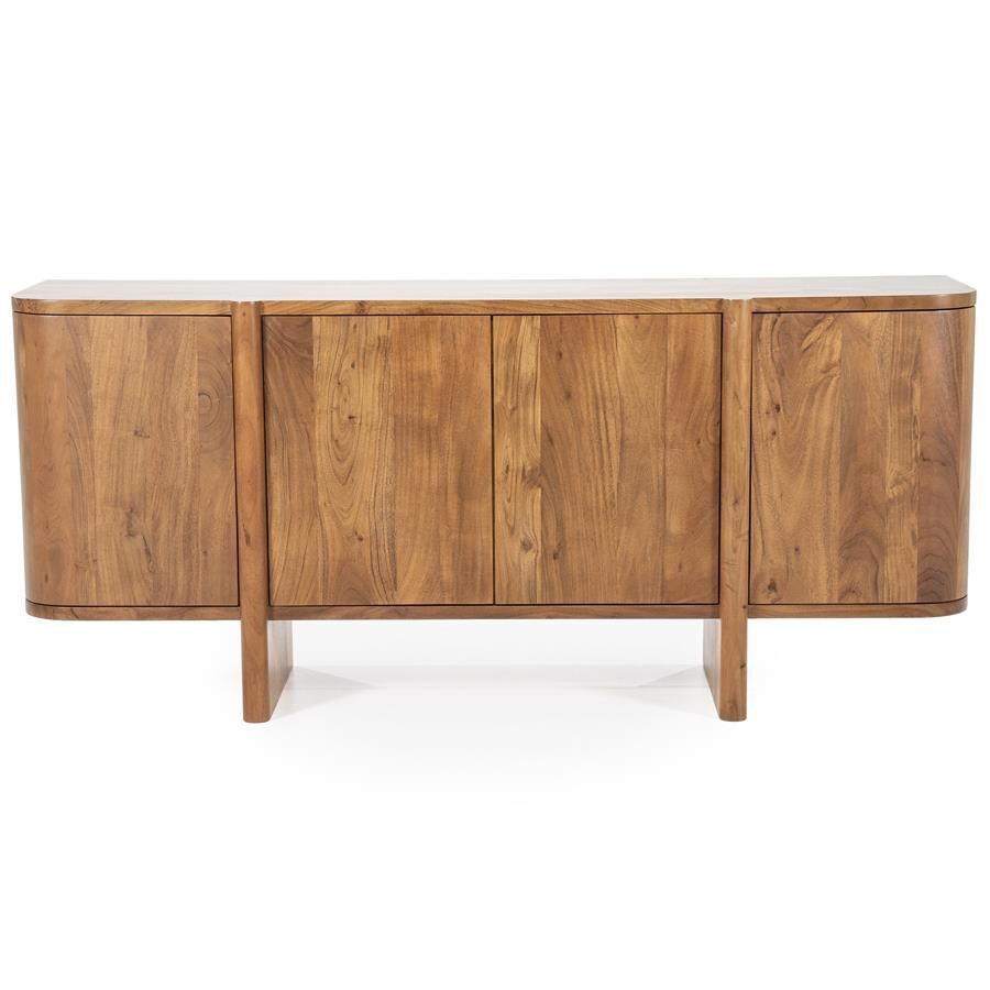 Vervaardigd uit hoogwaardig acaciahout, straalt het dressoir warmte en karakter uit. De natuurlijke houtnerf en de rijke bruine tinten maken elk exemplaar uniek. Met vier deuren opent Julian zich als een boek, onthullend een ruimte die perfect is voor het opbergen van diverse items, van servies tot boeken.