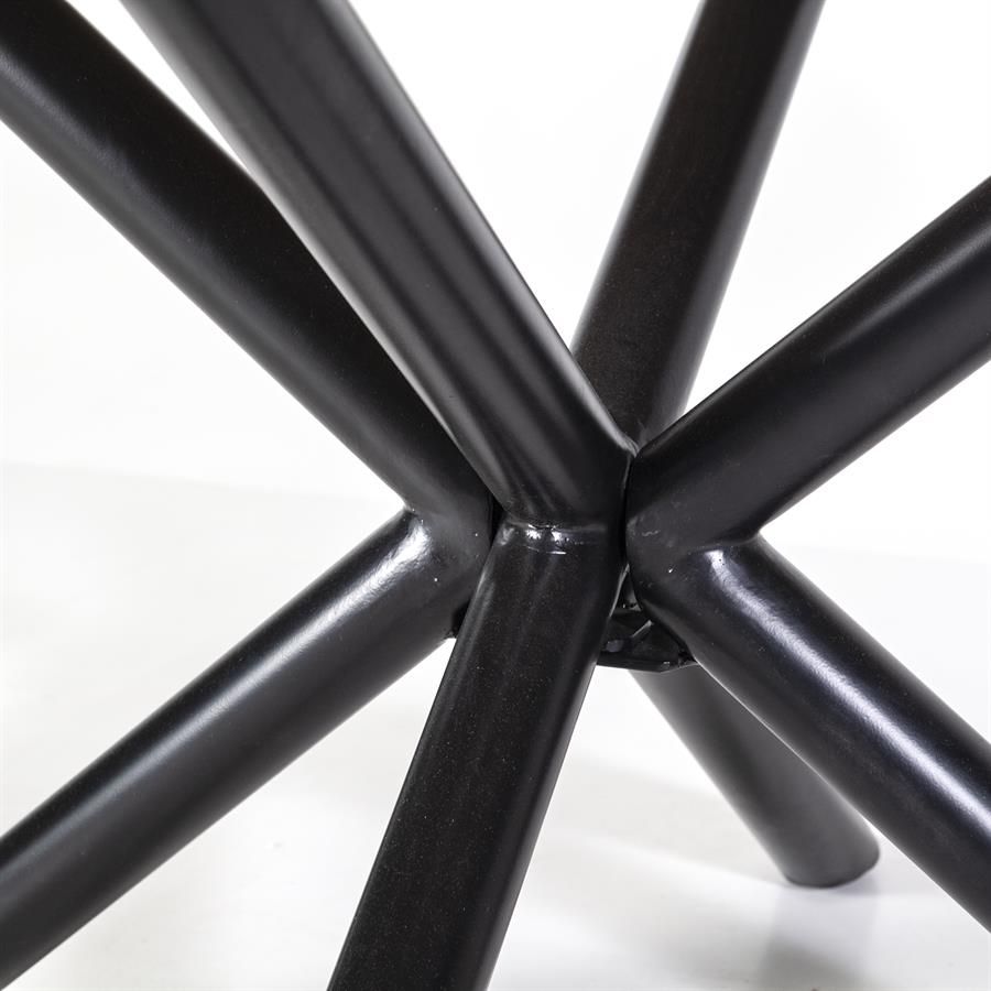De ruimte tussen de poten zorgt voor een luchtige uitstraling en maakt het gemakkelijk om stoelen rondom de tafel te plaatsen. Of je nu een intiem diner organiseert of gewoon gezellig samenkomt, deze tafel biedt de ideale setting.