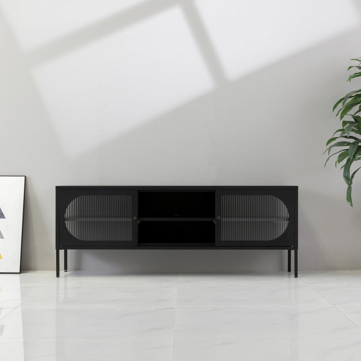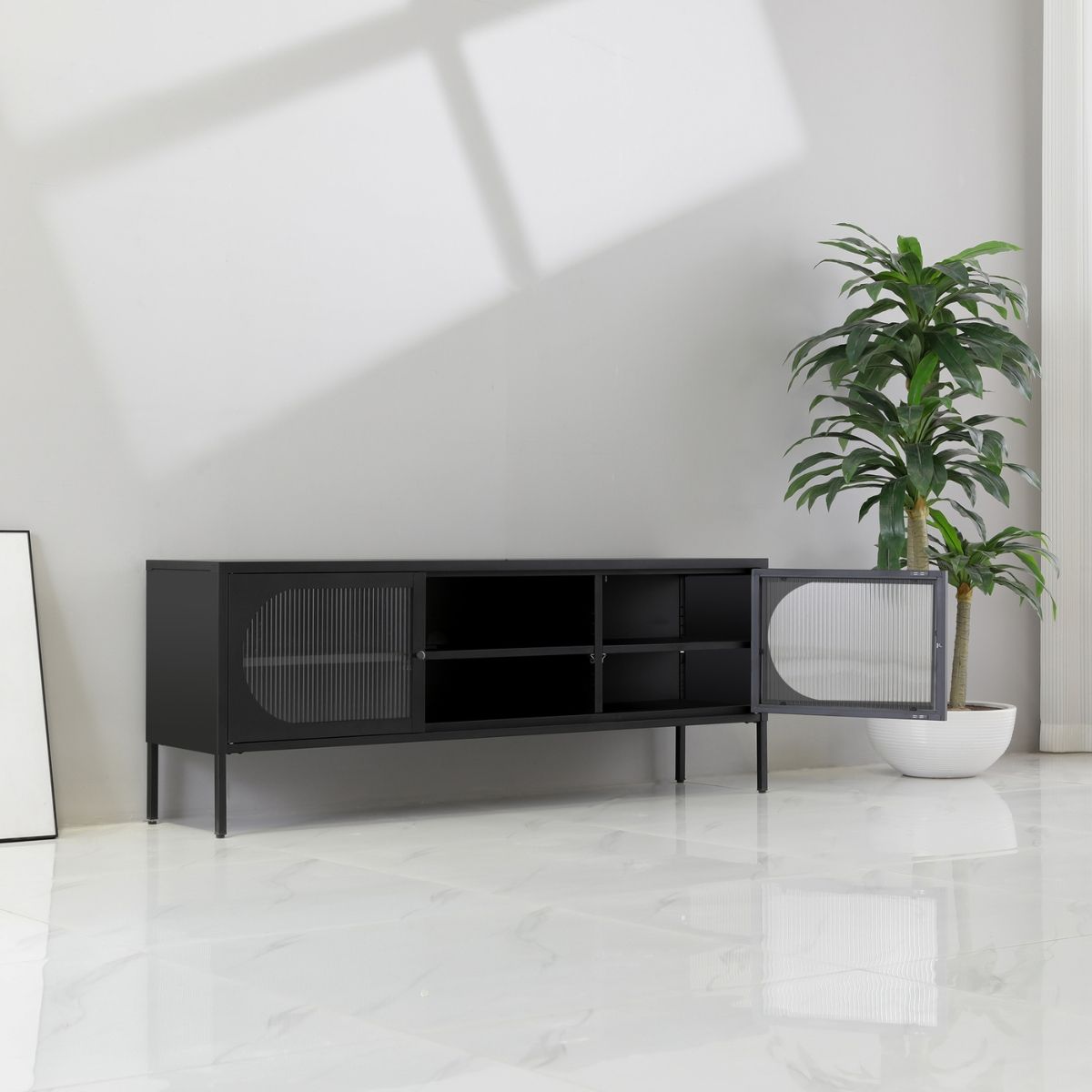 Maak kennis met de Industrieel metalen tv meubel next level - ovaal - jouw ultieme keuze voor een stijlvolle en praktische upgrade van je woonkamer. Met een eigentijdse afmeting van 60x35x160 cm en een unieke ovale glazen afwerking, is dit een mooie en uniek TV-meubel uit onze eigen collectie. Met maar liefst 3 slim ontworpen opbergvakken biedt dit TV-meubel niet alleen een prachtig uiterlijk, maar ook ongeëvenaarde functionaliteit. Elk vak is voorzien van een handige legplank, waardoor je jouw spullen moeiteloos kunt organiseren en efficiënt kunt opbergen. Het design is doordacht: één vak is open, ideaal om je favoriete items tentoon te stellen, terwijl de andere 2 vakken deuren hebben met een subtiel ribbelglas. Hier kun je gemakkelijk spullen plaatsen die je liever uit het zicht houdt, terwijl het unieke glasontwerp een abstracte en luchtige uitstraling geeft. De neutrale en moderne uitstraling van de Next Level zorgt ervoor dat hij naadloos past in diverse interieurstijlen. Ongeacht of je een minimalistische of een meer eclectische woonstijl hebt, dit meubel zal een gegarandeerde blikvanger zijn. En voor degenen die een vleugje luxe willen toevoegen, bieden we de mogelijkheid om de kast te upgraden met prachtige gouden handvatten. Deze details versterken het karakter van de kast en voegen een extra dimensie van verfijning toe aan je interieur. Kortom, met de Industrieel metalen tv meubel next level - ovaal haal je niet alleen een meubelstuk in huis, maar een statement van stijl, functionaliteit en persoonlijkheid. Bekijk ook de rest van de 'Next Level' serie op onze website.