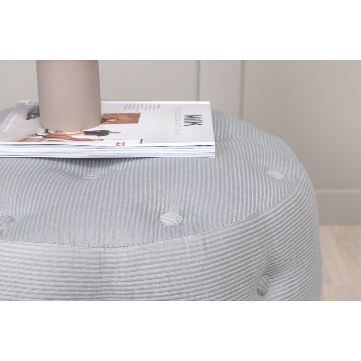 Het stevige frame zorgt voor een duurzame en stabiele constructie, terwijl de zachte bekleding een uitnodigende plek biedt om te ontspannen. Het tijdloze ontwerp maakt het eenvoudig om de hocker te combineren met verschillende stijlen en kleuren in uw interieur.