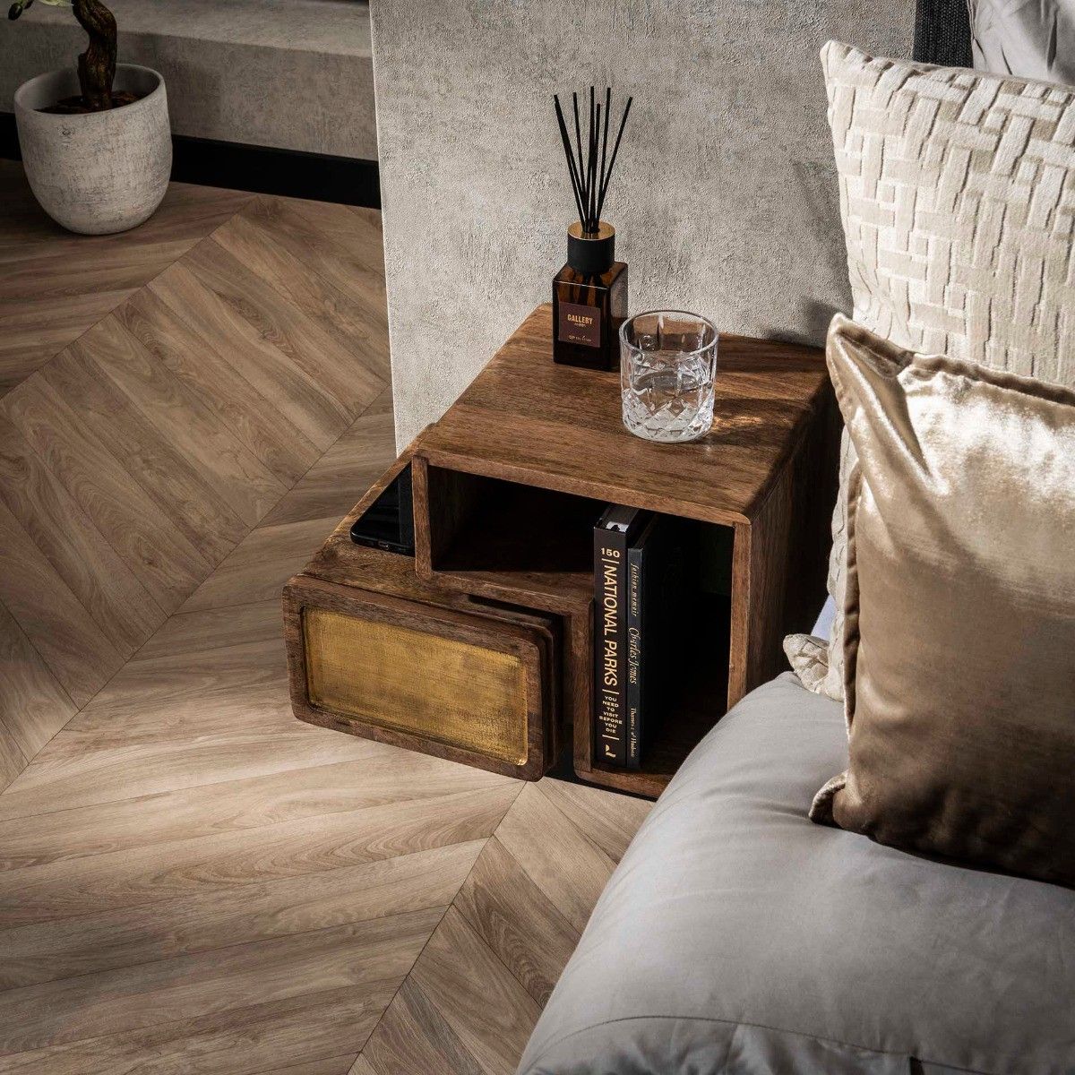 Kelsie nachtkastje set van 2 - brass/massief mango bruin