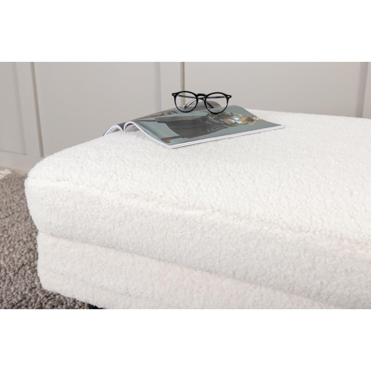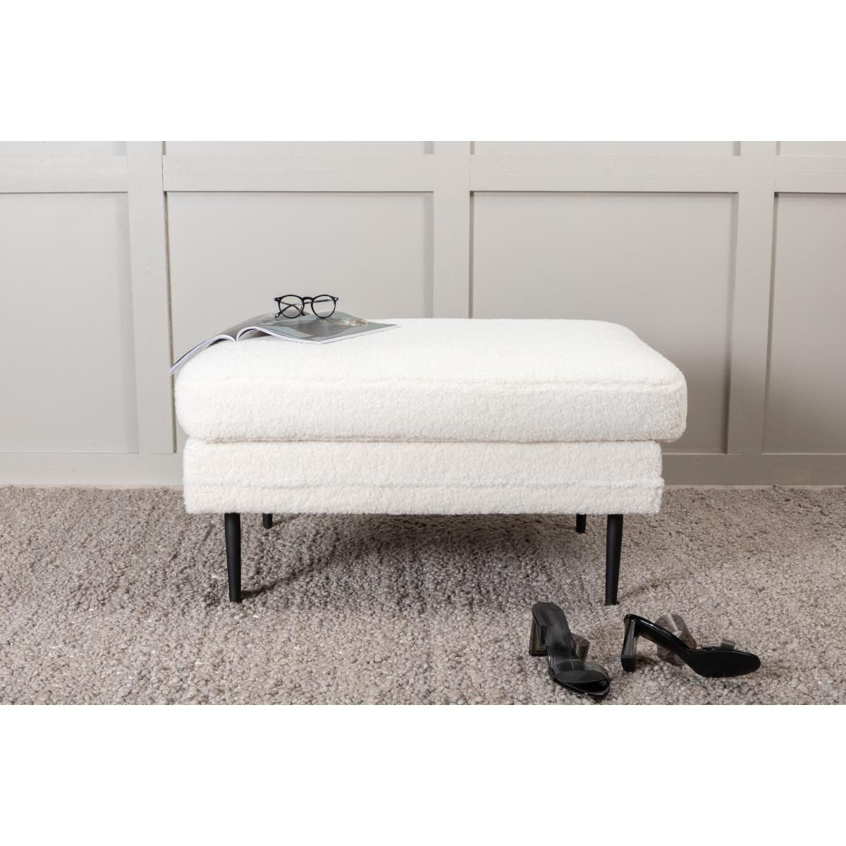 De Kira hocker - teddy - wit is een veelzijdig meubelstuk dat een vleugje elegantie toevoegt aan elke ruimte. Met een robuuste constructie biedt deze hocker niet alleen stijl maar ook duurzaamheid. De zachte bekleding zorgt voor een comfortabele zitervaring, ideaal voor zowel ontspannen momenten als voor gebruik als extra zitplaats bij bezoek.