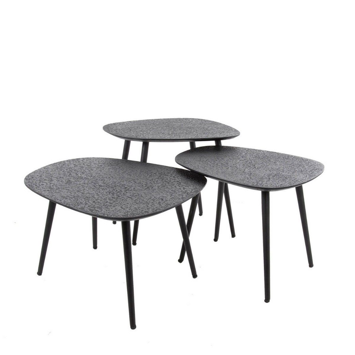 De Kiran salontafel set van 3 biedt een verfijnde, moderne uitstraling met zijn metallic grijze afwerking en vierhoekige vormen. Deze set bestaat uit drie tafels van verschillende hoogtes, die op verschillende manieren gecombineerd kunnen worden om een dynamische look te creëren. Het strakke, industriële ontwerp past perfect in moderne interieurs en biedt zowel functionaliteit als flexibiliteit. Gebruik de tafels samen als een centraal middelpunt in je woonkamer, of apart als bijzettafels voor een speelse en veelzijdige inrichting.