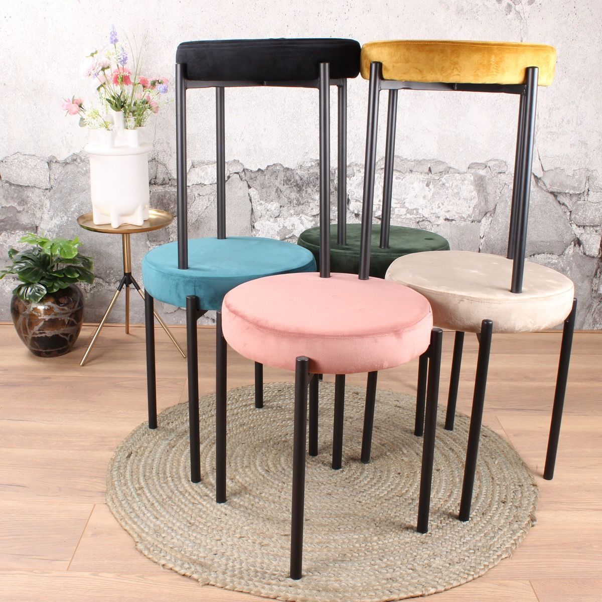 Deze stijlvolle, unieke en elegante kruk van ons eigen merk DS4U is een Eye-catch in elke ruimte. Deze kruk kan als hocker en stoel worden gebruikt en is gemaakt van heerlijk zacht velvet (100% polyester) en verkrijgbare in 4 trendy kleuren. De bovenkant is afgewerkt met velvet stof en de poten zijn gemaakt van gepoedercoat metaal. Plaats de kruk in de woonkamer, slaapkamer, eetkamer, werkkamer of hal en geniet van zijn hippe, stijlvolle en gezellige uitstraling. Je kunt de kruk eenvoudig combineren met de andere varianten, meubelen of leuke stoel of fauteuil in dezelfde stof en tinten.