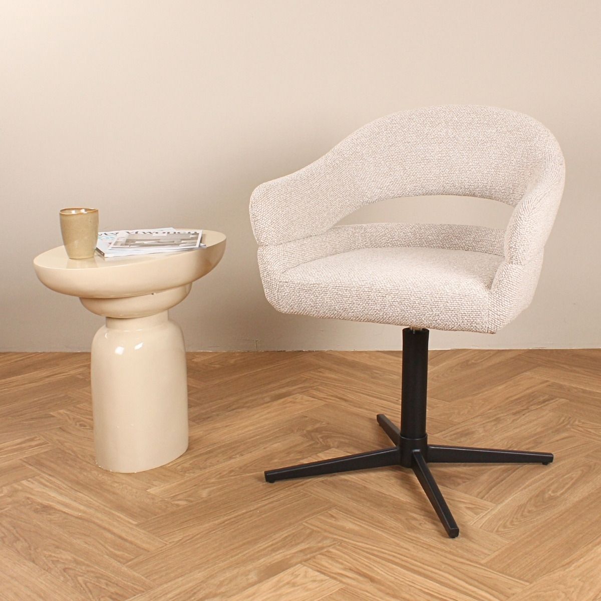 Ervaar ultiem comfort en verfijnd design met de Mila terugdraai stoel van het woonmerk DS4U. Deze draaibare stoel combineert een tijdloze elegantie met moderne functionaliteit. De zachte bekleding voelt luxe aan, terwijl de subtiele rondingen van het ontwerp een warme, uitnodigende uitstraling geven. Dankzij het slimme terugdraaisysteem keert de stoel automatisch terug naar zijn oorspronkelijke positie – praktisch én stijlvol. De Mila is perfect voor wie houdt van een statement in het interieur, zonder in te boeten op comfort. Zoek je een meer neutrale of Japandi-geïnspireerde uitstraling? Dan is de Mila terugdraai stoel van DS4U een prachtige, minimalistische tegenhanger met een serene, moderne flair.