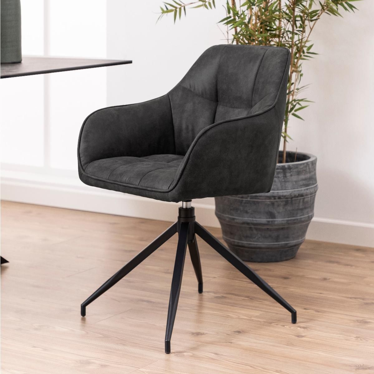 Nila armstoel | zwart metaal onderstel | stof Preston - antraciet
