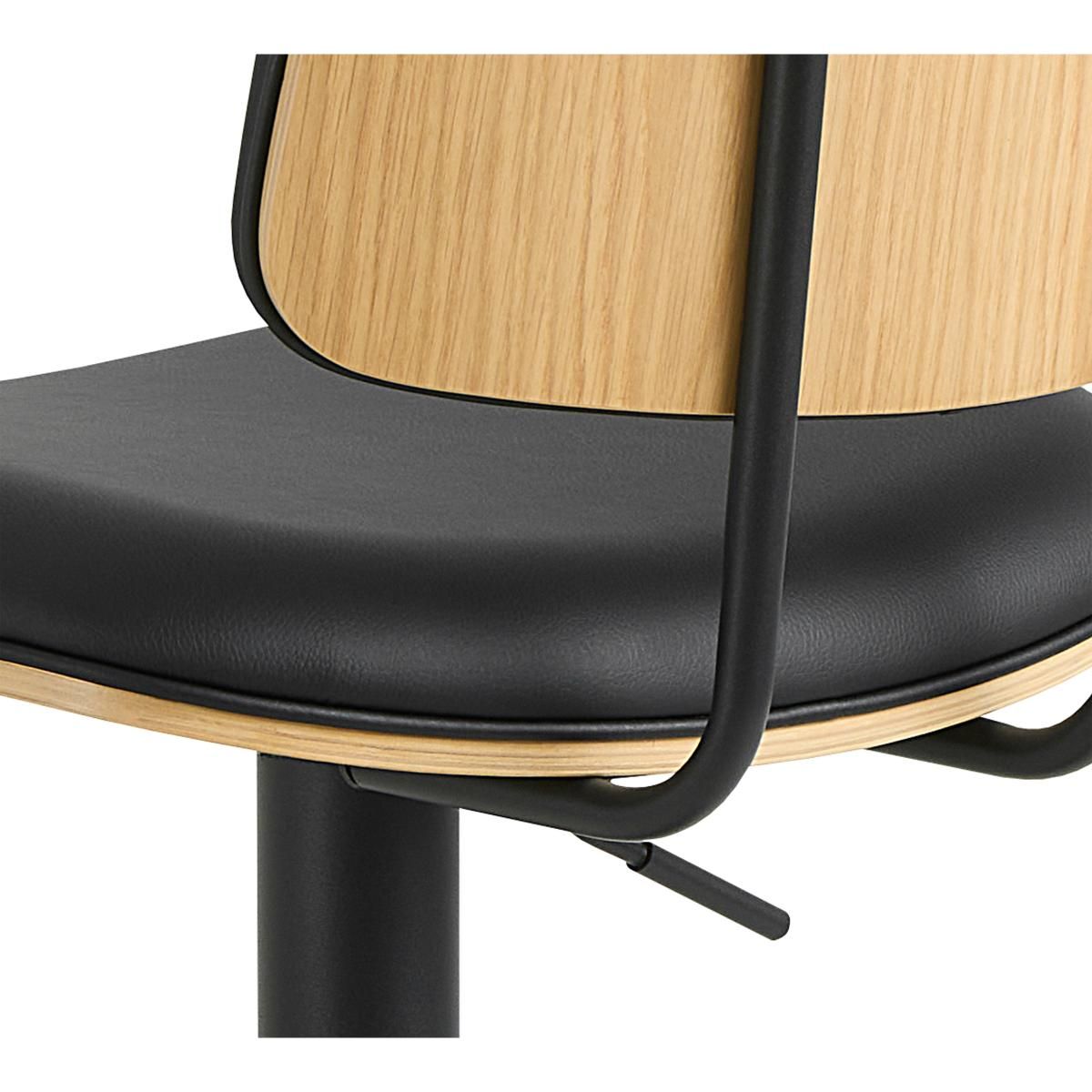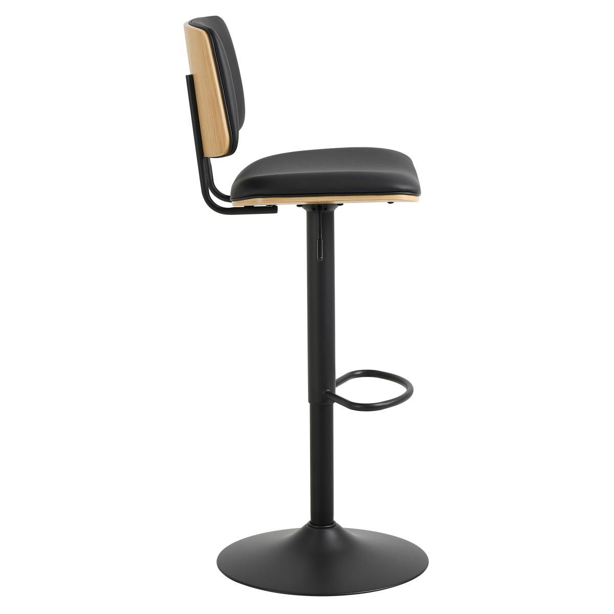 De Hallie verstelbare barstoel van Nøra combineert modern, strak design met duurzaam comfort. Het zwarte metalen onderstel geeft de barstoel een stoere uitstraling, terwijl de zitting is bekleed met zwarte PU-stof. Perfect voor bartafels en kookeilanden in een eigentijdse eetruimte.