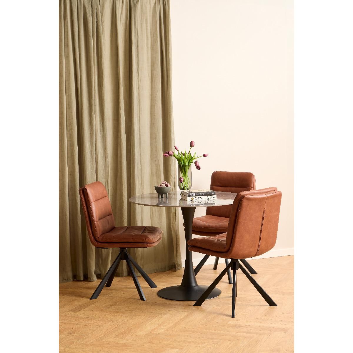 De Olin draaistoel met PU retro in beige straalt een warme, retro-look uit met modern comfort. Het zwarte metalen onderstel zorgt voor een stoer accent, terwijl de PU-bekleding zacht aanvoelt en eenvoudig schoon te houden is. Het draaibare mechanisme en de ergonomische armleuningen maken deze stoel ideaal voor lange diners, werkplekken of gezellige momenten aan tafel.
