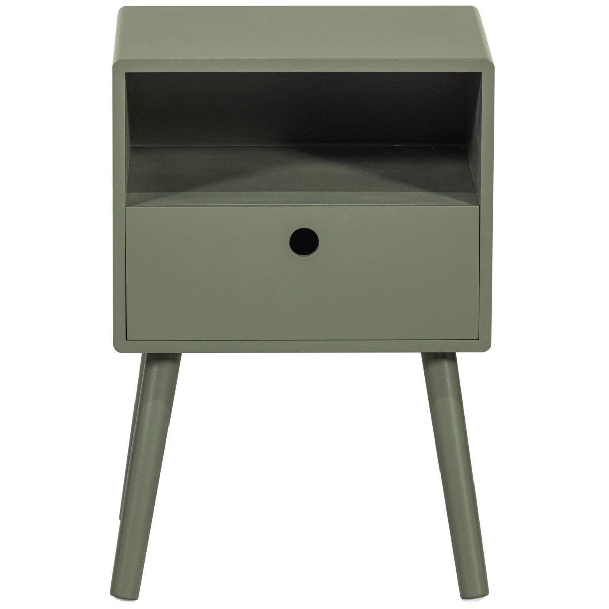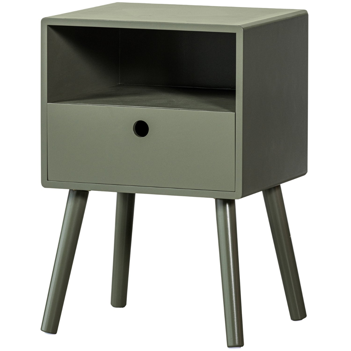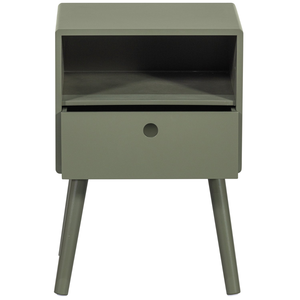 Het Ozzy nachtkastje is een speelse en praktische toevoeging naast je bed. De warme groene kleur en het eenvoudige ontwerp geven een frisse en vriendelijke uitstraling. Met een lade en een open vak biedt Ozzy plek voor je boek, bril of andere essentials.