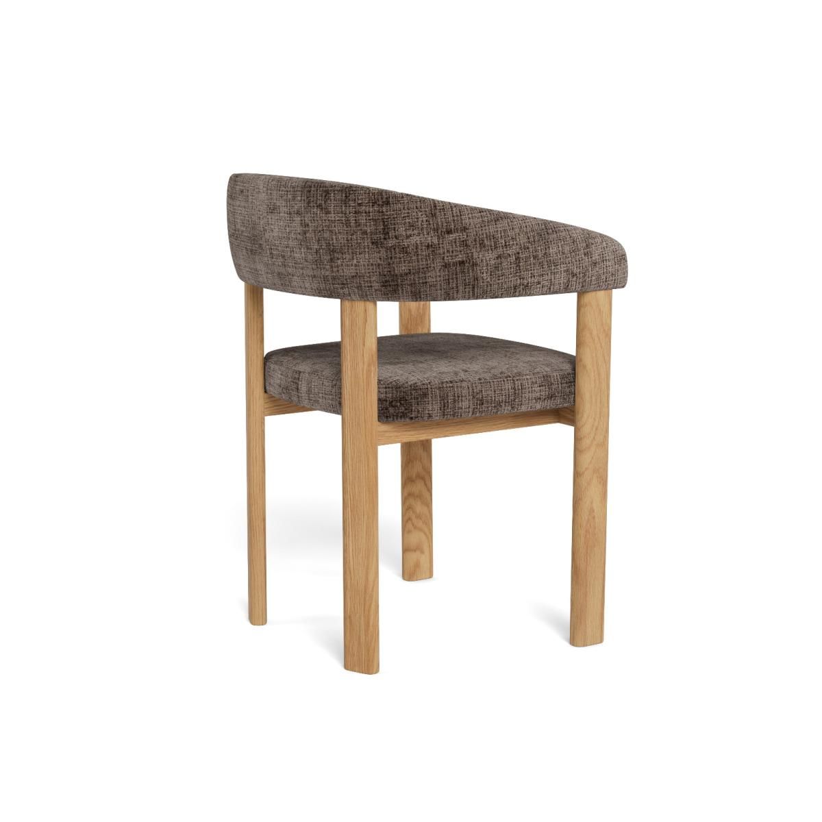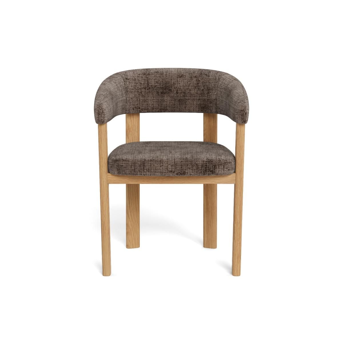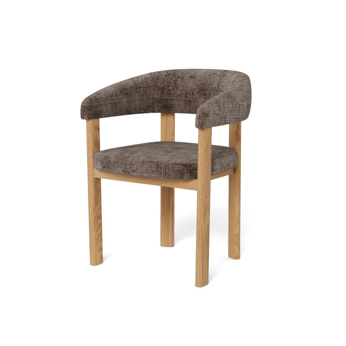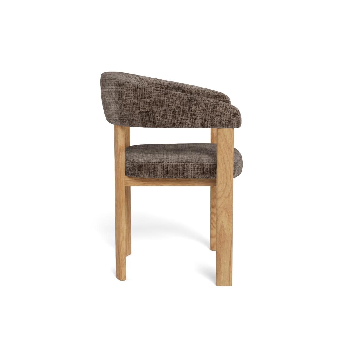 De Pippa armstoel biedt comfortabel zitgemak en een eigentijdse uitstraling. Het zwarte metalen onderstel geeft een stoere basis, terwijl de zitting bekleed is met Juto-stof in bruin, duurzaam en zacht. Ergonomisch en ideaal voor lange diners.