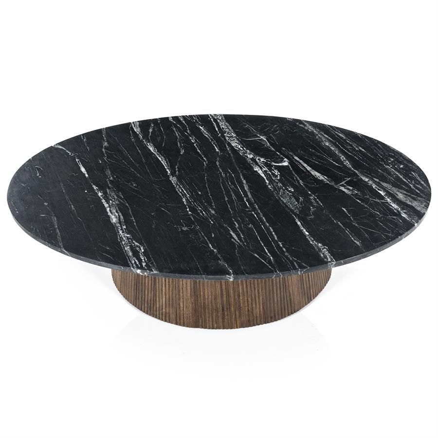 Geef je woonruimte een eigentijdse uitstraling met de Eleonora Salontafel Maxim. Met zijn ovale vorm, royale afmetingen van 120x70 cm en het gebruik van mango hout en marmer, brengt deze salontafel zowel functionaliteit als luxe in je interieur.