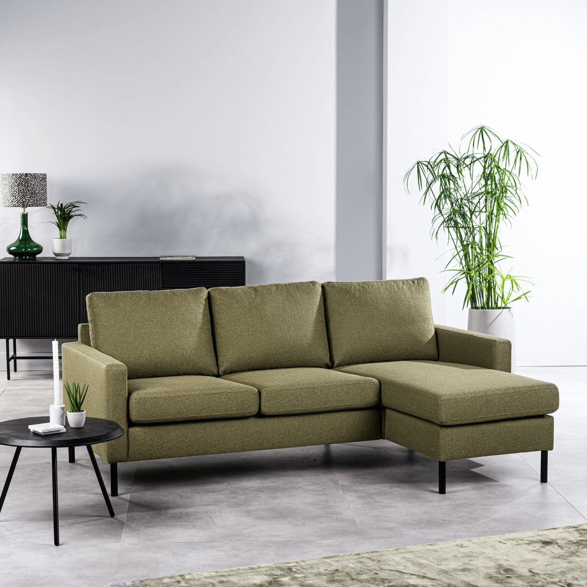 Sandra bank komt van het geliefde woonmerk Vurna. Wij zijn dol op deze prettige 3-zitsbank door zijn compacte vorm en prettige materialen. Vurna staat bekend om haar uitgebreide collectie zitbanken voor een betaalbare prijs. Daar is Sandra ook onderdeel van! Deze zitbank is een echte 3-zits. De hoek is een apart onderdeel die je zelf links of rechts kunt plaatsen. Zo past deze Sandra bank in iedere ruimte. Ze is verkrijgbaar in groen of beige in de stof Dillon. De afmetingen zijn 200x133x80cm. Deze bank heeft stalen poten. De bank dient zelf gemonteerd te worden, maar dit is gemakkelijk door de montage handleiding. De zitting is 14 cm dik waardoor je heerlijk lang op deze bank kunt uitrusten na een lange dag.
