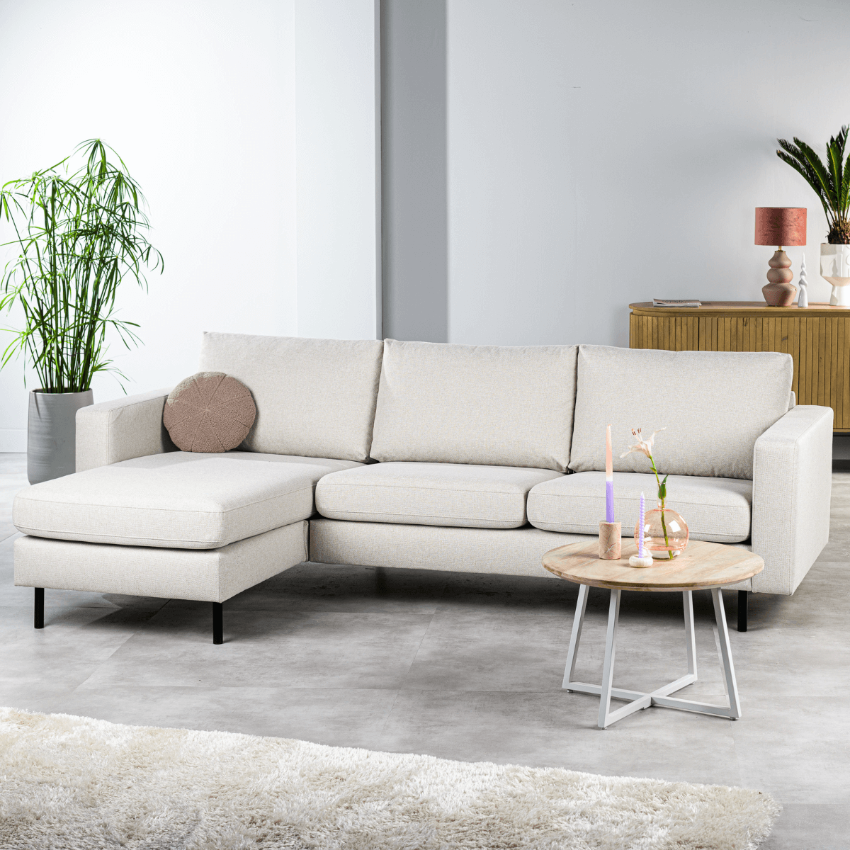 Sollin bank komt van het geliefde woonmerk Vurna. Wij zijn dol op deze prettige 3-zitsbank door zijn compacte vorm en prettige materialen. Vurna staat bekend om haar uitgebreide collectie zitbanken voor een betaalbare prijs. Daar is Sollin ook onderdeel van! Deze zitbank is een echte 3-zits. De hoek is een apart onderdeel die je zelf links of rechts kunt plaatsen. Zo past deze Sollin bank in iedere ruimte. Ze is verkrijgbaar in beige of ivoor in de stof Dillon. De afmetingen zijn 251x15x82 cm. Deze bank heeft stalen, hoge poten. De bank dient zelf gemonteerd te worden, maar dit is gemakkelijk door de montage handleiding. De zitting is 17 cm dik waardoor je heerlijk lang op deze bank kunt uitrusten na een lange dag.