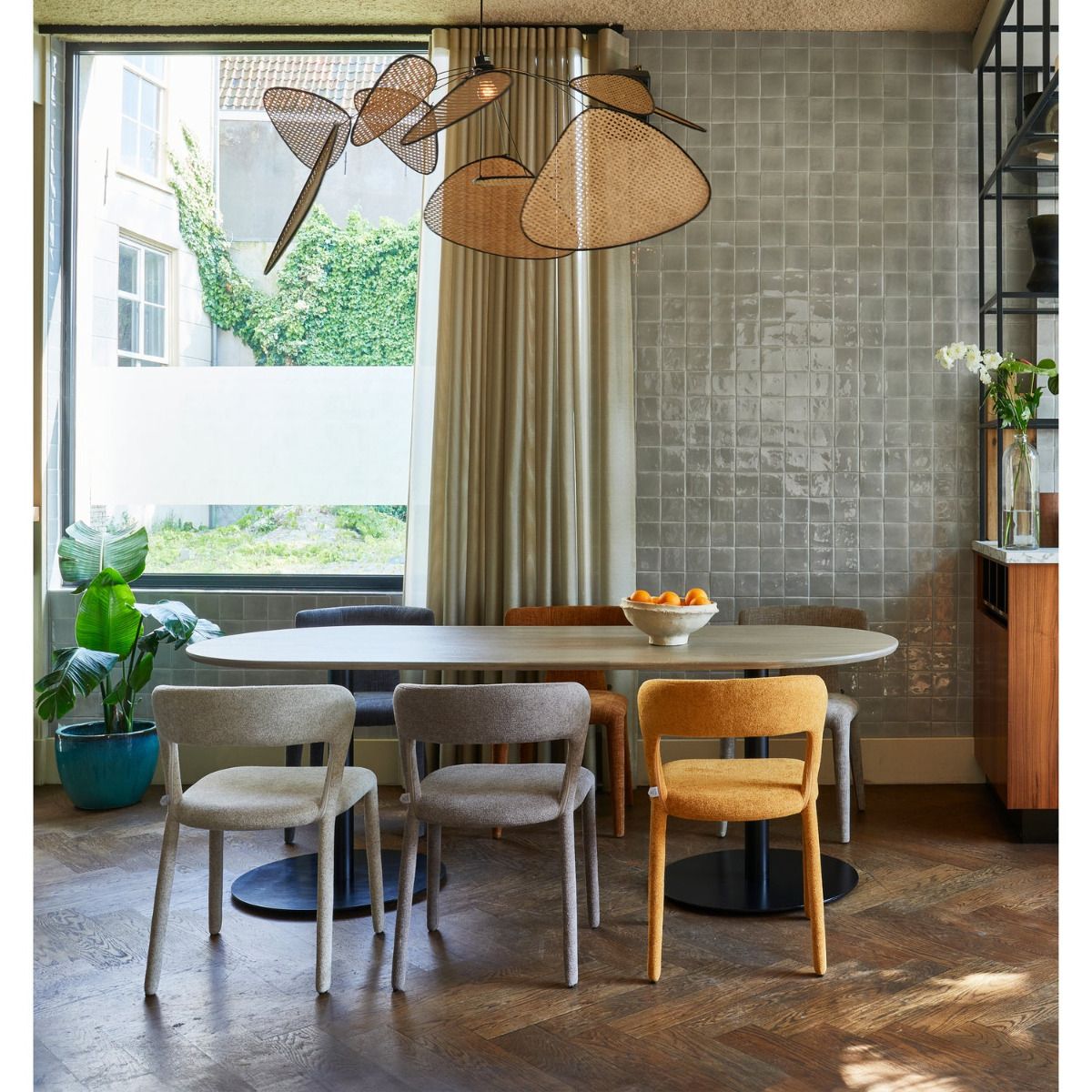 De combinatie van een pebble grey tafelblad met een zwart onderstel geeft deze ovale Tablo tafel een modern en verfijnd karakter. Het royale formaat maakt het de perfecte tafel voor lange diners of een stijlvolle werkplek. De zachte grijstint brengt rust, terwijl het onderstel voor een krachtig accent zorgt.