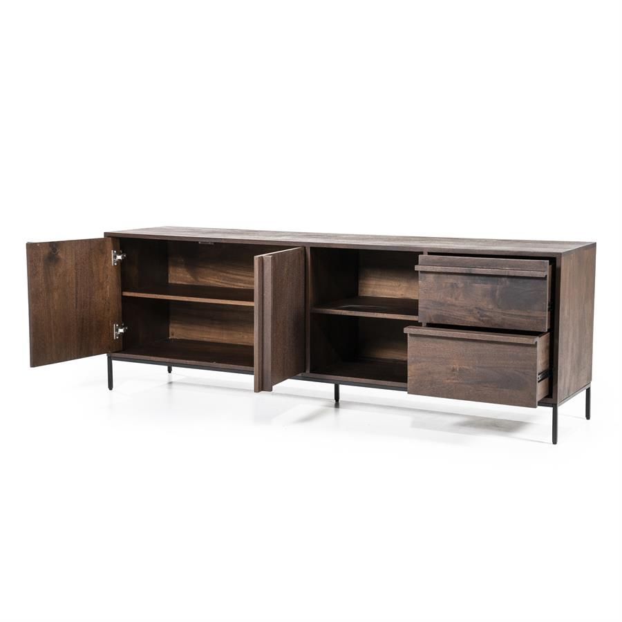 Het TV Meubel Jimmy straalt warmte en stoerheid uit dankzij het gebruik van hoogwaardig materiaal en strakke lijnen. De 2 deuren en 2 laden zorgen voor een opgeruimde uitstraling en bieden plek voor het netjes opbergen van apparatuur, afstandsbedieningen en andere benodigdheden.