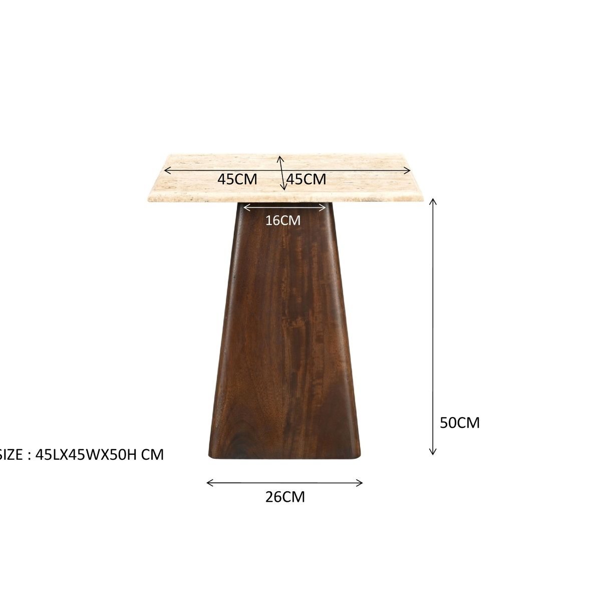 De grote vierkante salontafel biedt een royale oppervlakte voor al je drankjes, boeken en decoratieve items, en voegt een stijlvolle en functionele touch toe aan je woonruimte. Het onderstel van deze tafel straalt warmte uit met zijn bruine kleur, wat een uitnodigende sfeer creëert en tevens stabiliteit en stevigheid biedt.