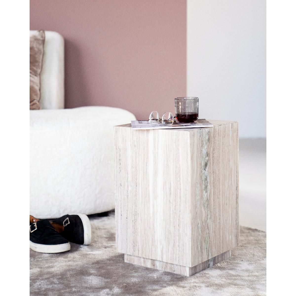 Het marmeren blad, met subtiele aderingen, straalt klasse uit, terwijl het vierkante ontwerp moderniteit omarmt. Vince is niet alleen een bijzettafel, maar een kunstwerk dat functionaliteit en stijl harmonieus verenigt.